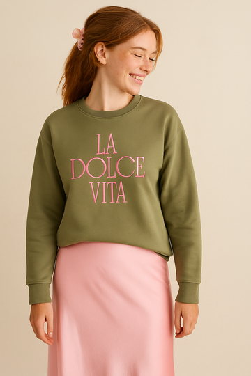 Tauche ein in italienisches Flair mit unserem verspielten Dolce Vita Pullover! Dieser süße Hingucker vereint die angesagten Trendfarben Olive & Pink zu einem sommerlichen Meisterwerk. Direkt aus Italien zu dir – bringt er authentische Mediterranean Vibes in deinen Kleiderschrank. Hol dir ein Stück Dolce Vita und lass deinen Look sonnig strahlen!