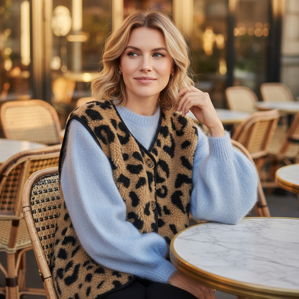 Diese Teddy Weste bringt Abwechslung und Spaß in jeden Look. Mit coolen Druckknöpfen ist sie nicht nur stylisch, sondern auch super praktisch. Perfekt, um deinem Outfit einen trendigen und gemütlichen Touch zu verleihen!